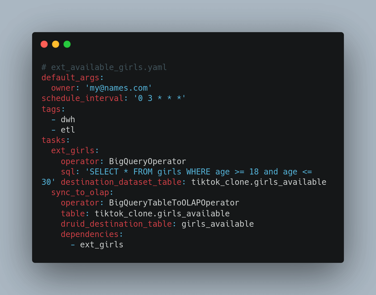 Declarative&Abstraction: Users không cần phải biết quá chi tiết về mỗi operator có những gì, chỉ cần điền những field đủ để run (tất nhiên vẫn cần phải đủ flexible để có thể tùy biến khi cần thiết)- Tự động gắn alert khi dag failed. (Mà đối với python phải import tay vào từng DAG).